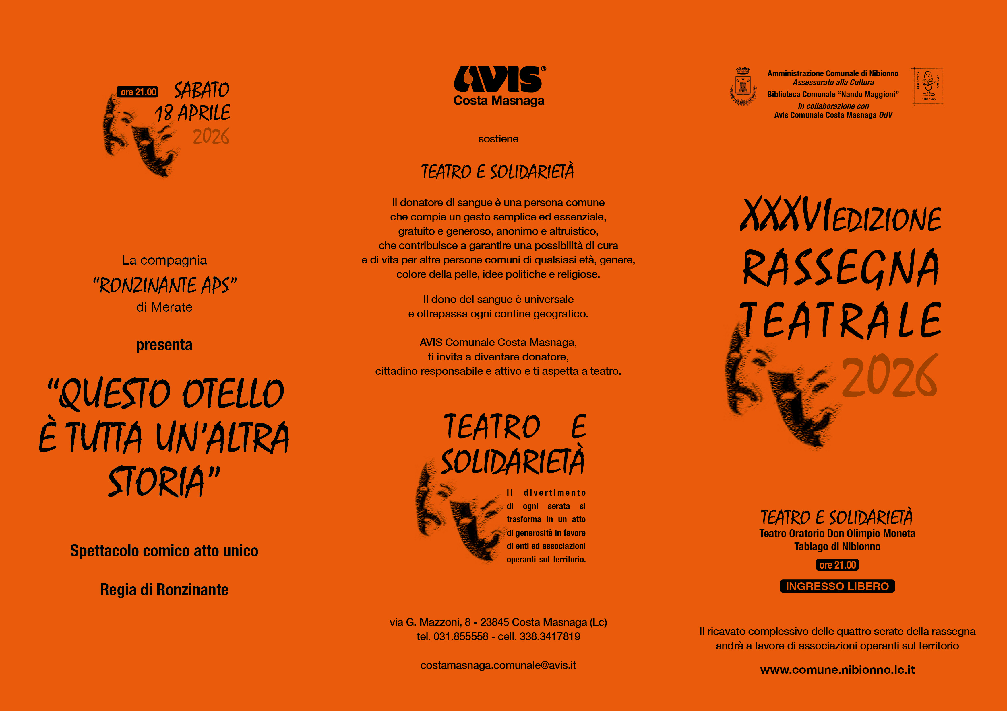 - SABATO 18 APRILE 2026 "QUESTO OTELLO E' TUTTA UN'ALTRA STORIA" compagnia "RONZINANTE APS" di Merate